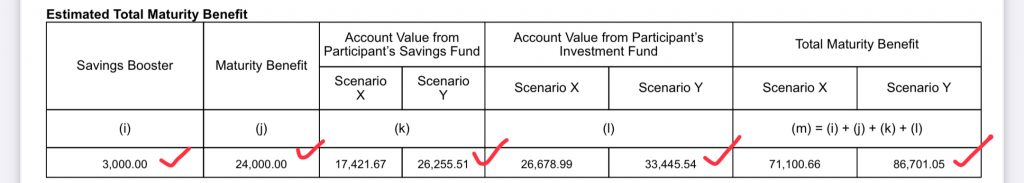 If you pass within the first and second year, your beneficiary will receive 100% refund of total contribution. For the third year onwards, this will also include your investment booster and account value from your investment-linked portion. Please take note that 75% of total contribution paid will be refunded to those with entry age 45 and above but bear in mind, that your investment boosters and account value may have already surpassed the total contribution you paid.